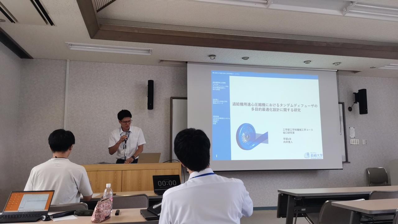向井くんが「遠心圧縮機用タンデムディフューザの多目的最適化」についての研究発表を行いました!